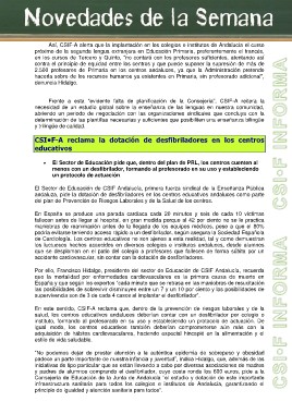 CSI•F-A reclama la dotación de desfibriladores en los centros
